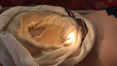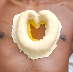 (fermented rice gruel) is placed over it. The patient sits on a stool, keeping a safe